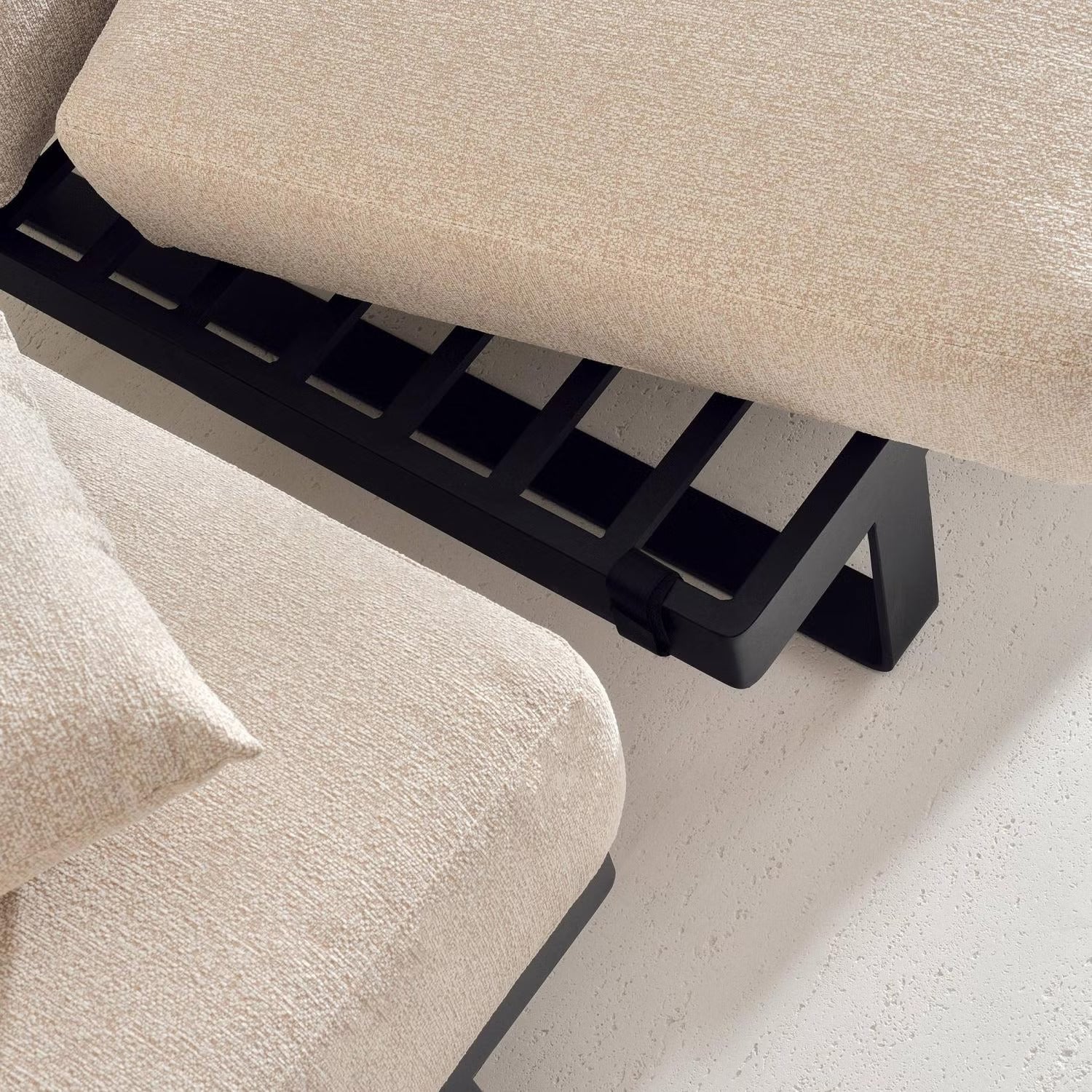 Crafted with a sleek black aluminum frame, this set brings clean lines and a bold, architectural edge to any outdoor setting. The contrast with warm natural wood details creates a high-end look that suits both modern and rustic spaces.