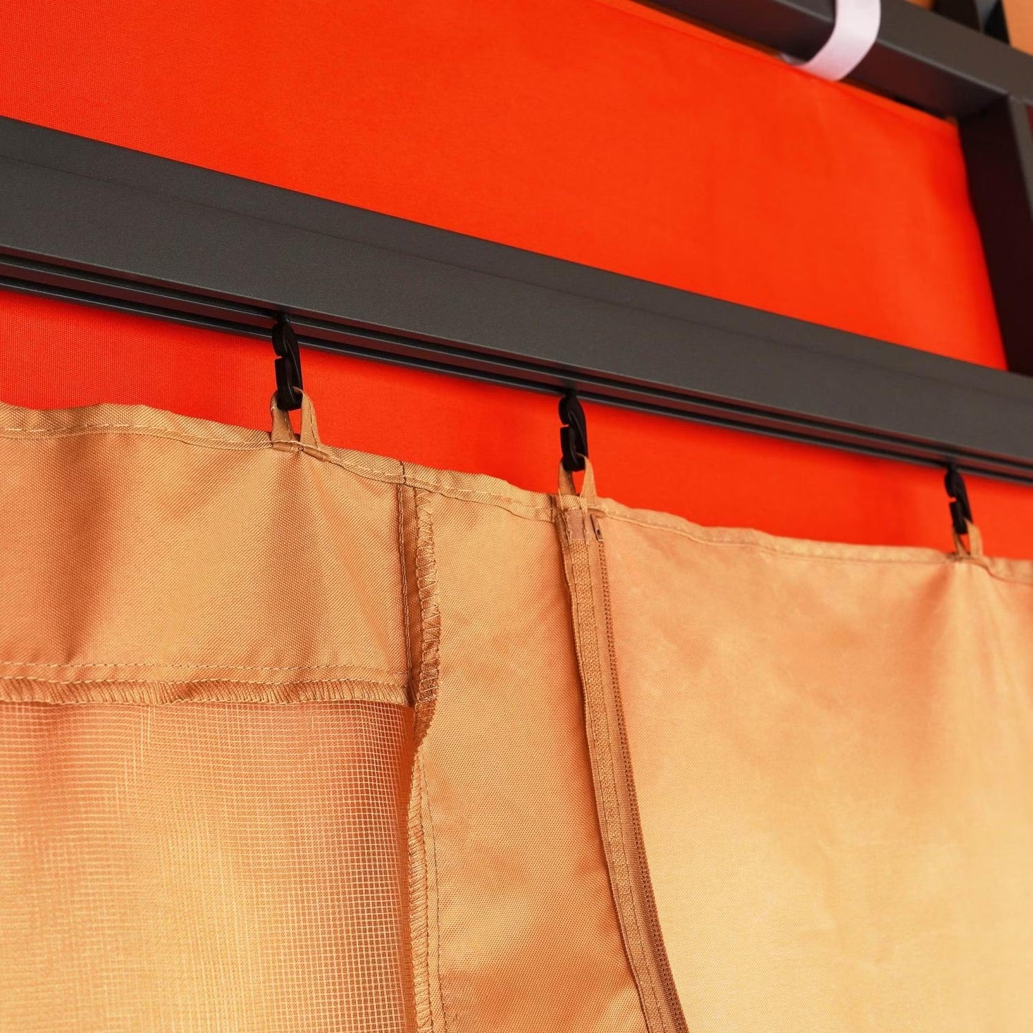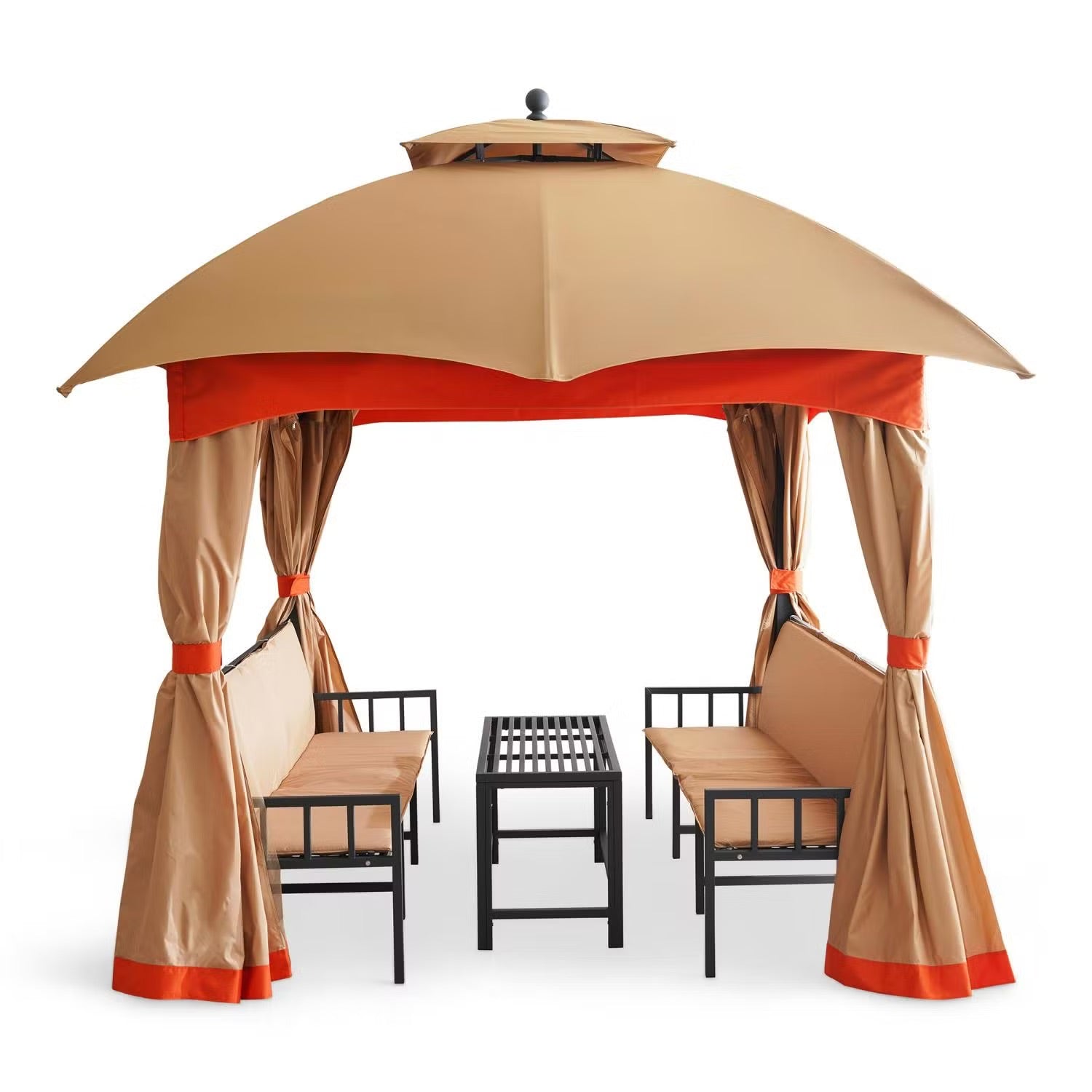 Add comfort, style, and shade to your garden with the Sorana Outdoor Gazebo Set, designed as a full relaxation zone with integrated seating and a central coffee table. Featuring a soft beige and orange color palette, mosquito netting, and privacy curtains, this 3x3 metre gazebo is ideal for lounging, entertaining, or enjoying quiet moments outdoors.