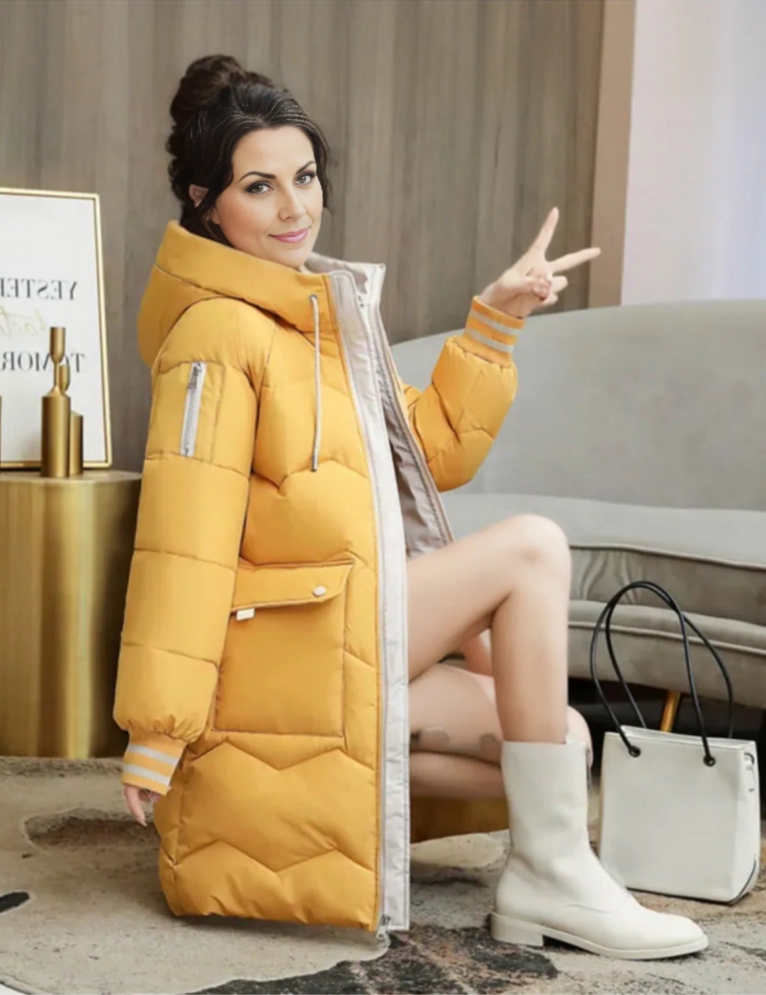 De vastgenaaide capuchon is zacht gevoerd om extra bescherming te bieden tegen koude lucht. Deze functie biedt praktische bescherming voor hoofd en nek, vooral bij winderige of sneeuwachtige omstandigheden.