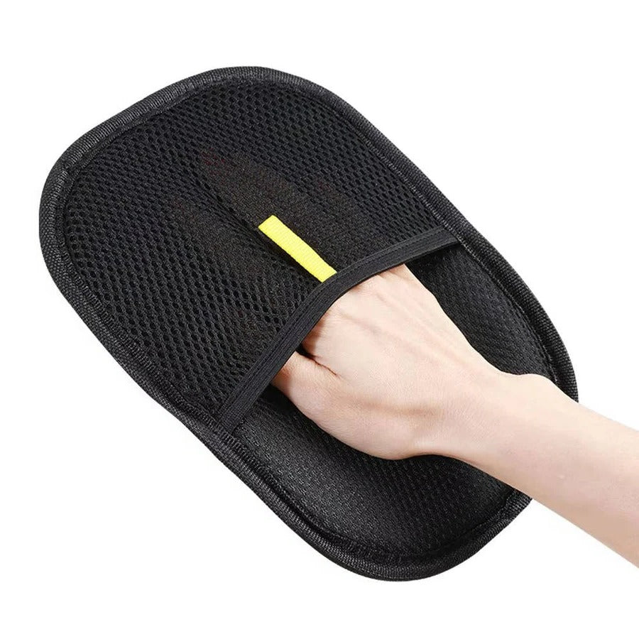 De achterkant van de handschoen is gemaakt van ademend gaas, waardoor uw hand koel en zweetvrij blijft tijdens het verzorgen. Een zachte, elastische polsband zorgt voor een strakke en comfortabele pasvorm, met volledige bewegingsvrijheid zonder uw hand te beperken.