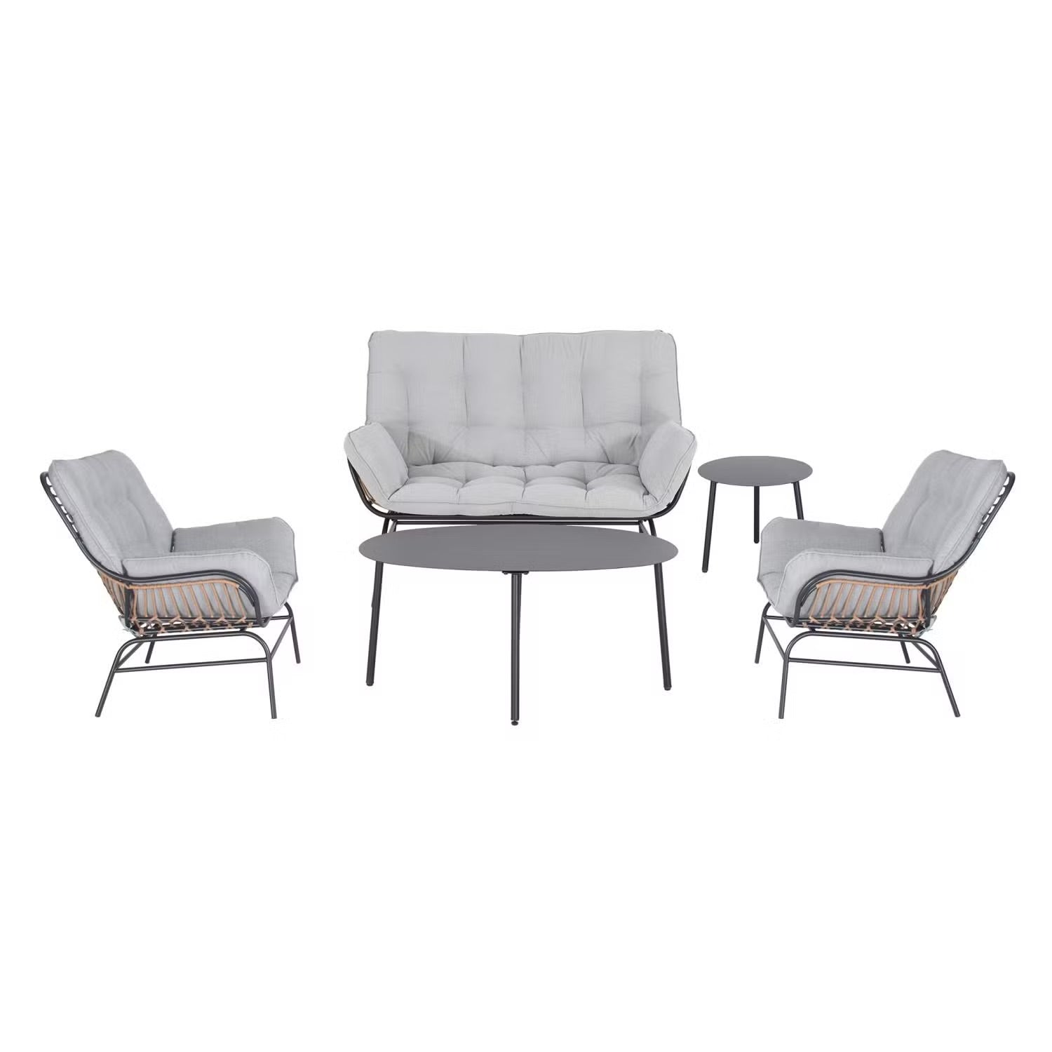 De Sorella Outdoor Sofa Set is een compacte maar elegante oplossing voor balkons, patio's en hoeken in de tuin. Met een strakke grijze afwerking, stabiel stalen frame en zowel salontafel als bijzettafel inbegrepen, is deze set ontworpen voor gemak, comfort en eigentijds buitenleven.